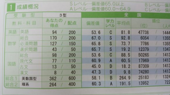 本日、河合模試の結果が返ってきました!!