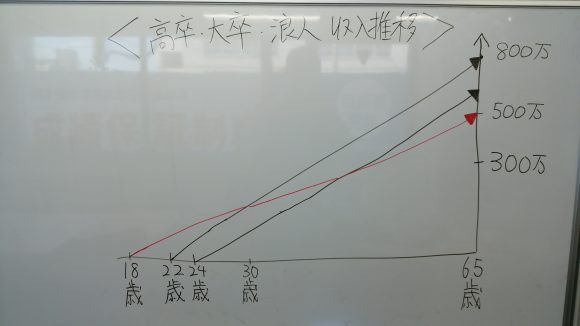 定年で退職するまでにざっと2500万円ぐらいの収入の差が出ます。