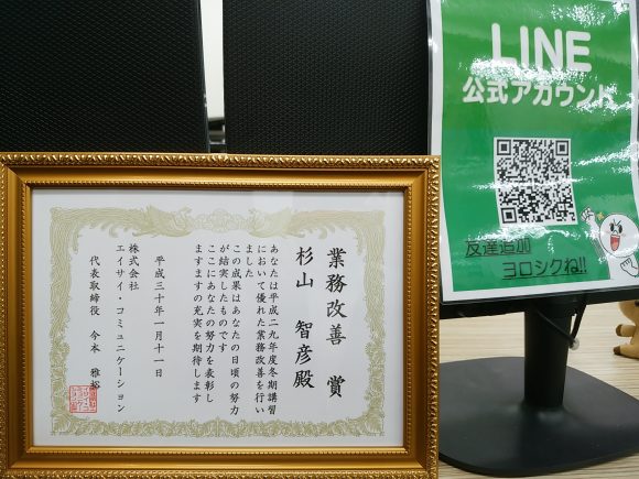 2017年の業務改善に一番貢献した人がもらえる賞に、