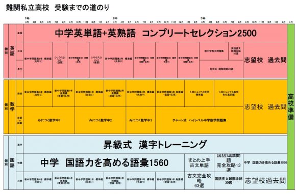 難関私立高校受験者用の3年時の春~夏のより良い教材探し。