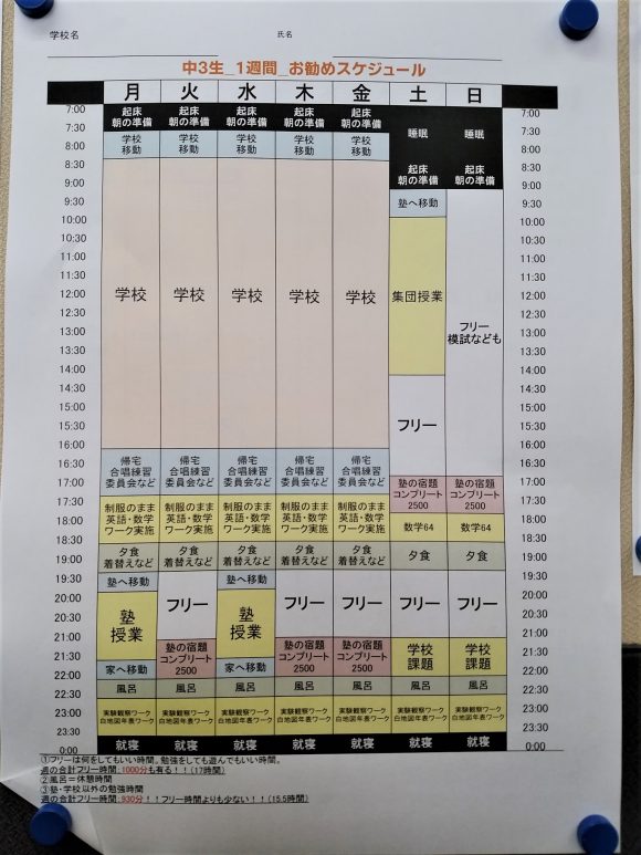 【個別指導塾 英才個別学院 井土ヶ谷校】中3生の週間スケジュールも作成しました♪♪