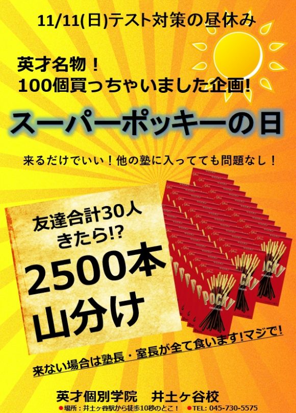 ポッキー2500本が待ち構えていますよ(^^♪