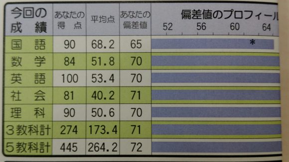 中3生の11月時点の模試で、