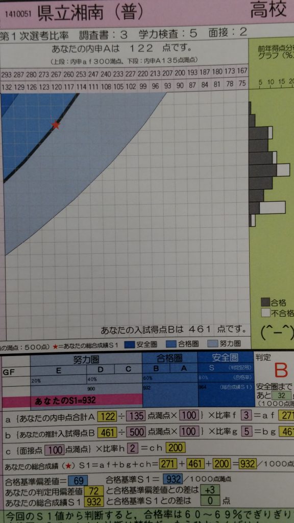 湘南高校志望でB判定!!