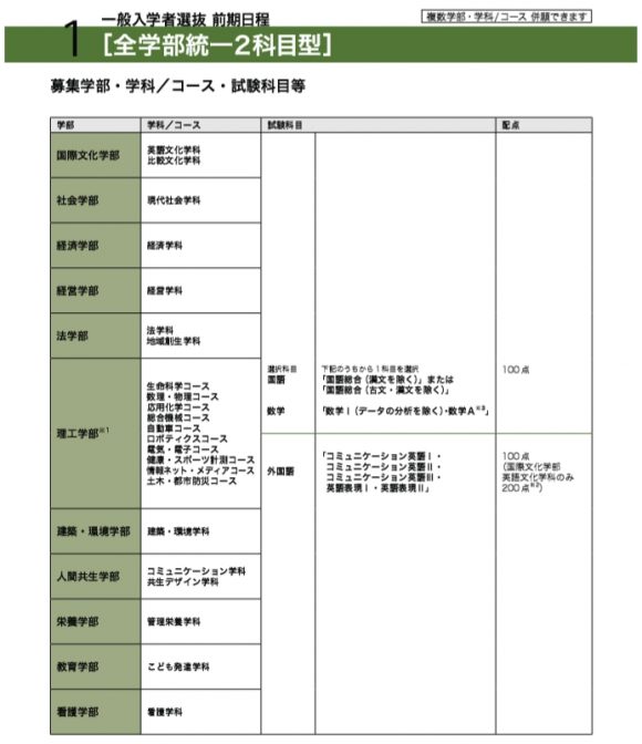 ↑桜美林大学の入試要項より抜粋。