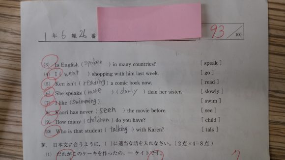 英語の高1最初のテストで・・・