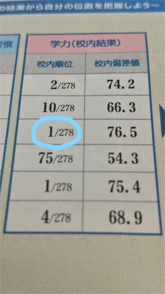 学年1位!!(278人中)
